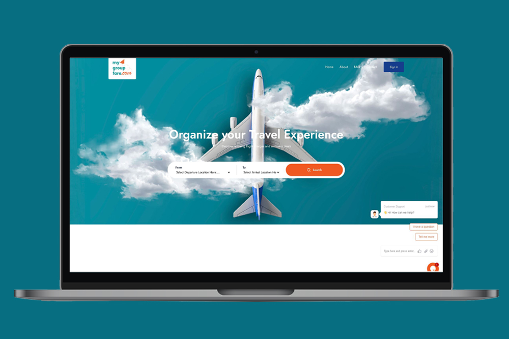 A web application by VISTA Holidays, customers can book Domestic and International Air tickets from the mygroupfare.com website. The platform is designed to offer a seamless and convenient booking experience, ensuring users can easily find and reserve flights to suit their travel needs.